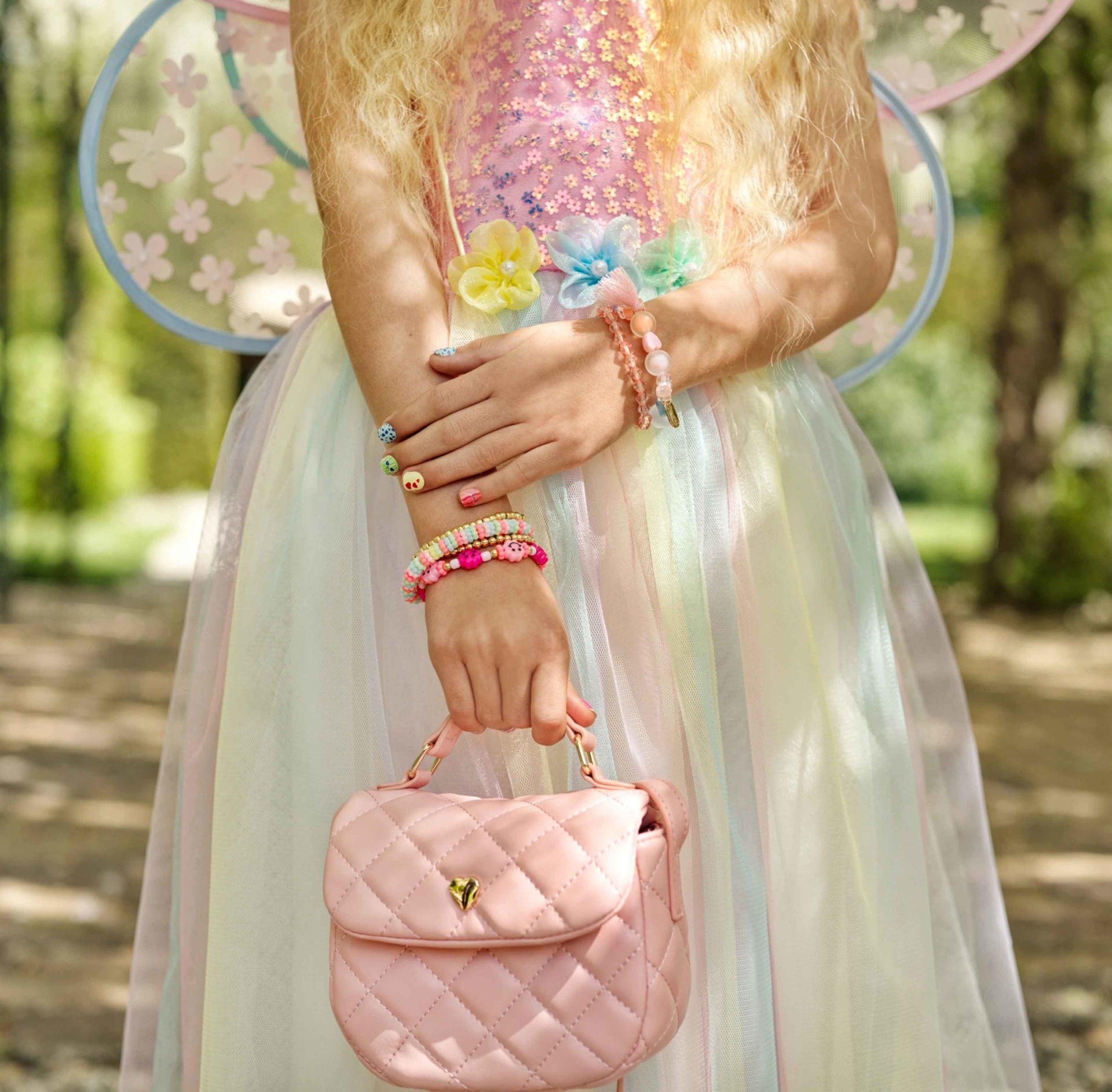 Оваа детска чанта за на рамо од холандскиот бренд Souza! е префинета нежно розова чантичка со елегантни златни детали. Нејзината компактна големина ја прави идеална за носење на вашите основни работи со доза на разиграна софистицираност, каде и да одите.
