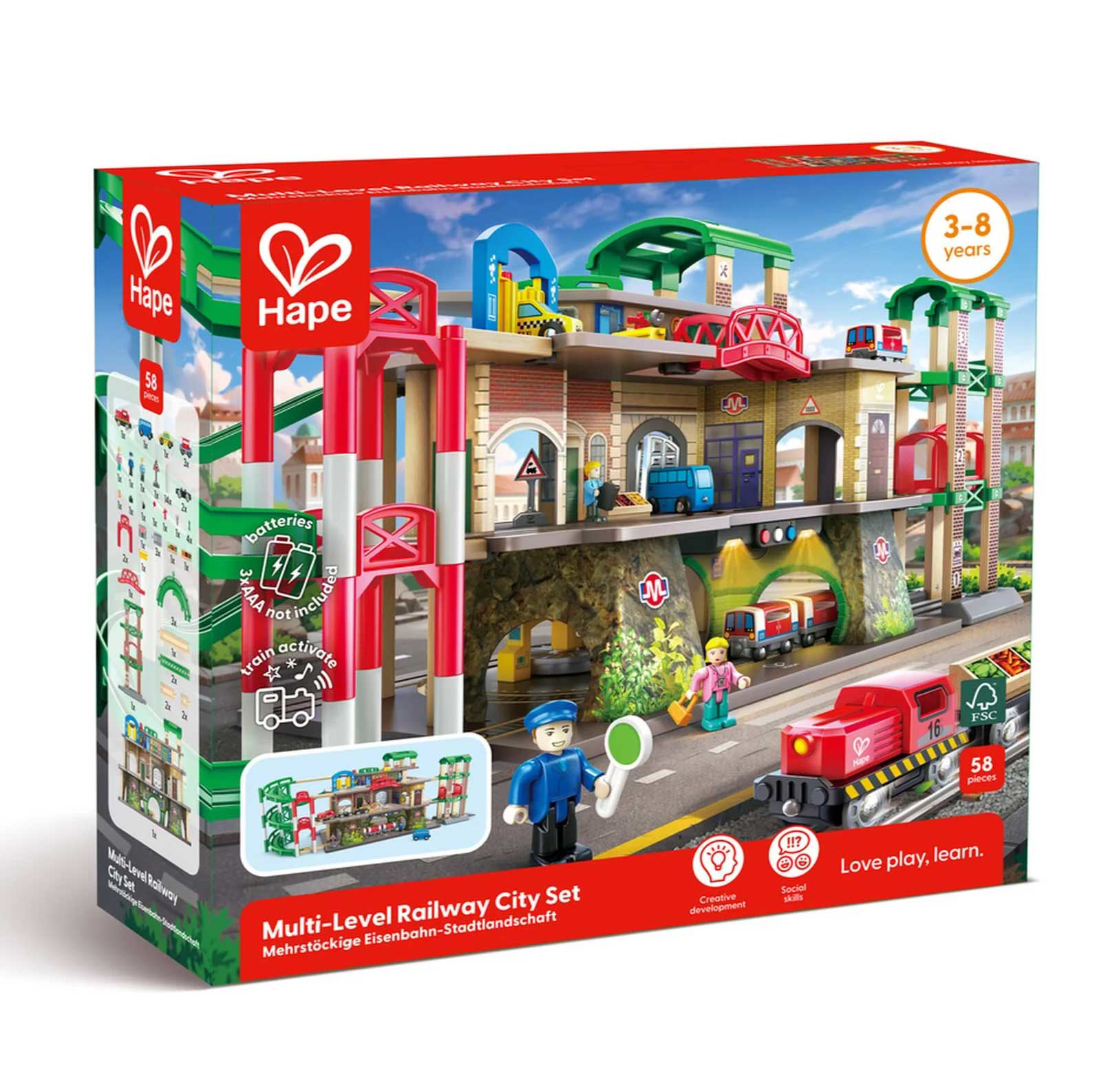 Градски железнички комплет на повеќе катови (58 елементи) - Hape Inetrnational