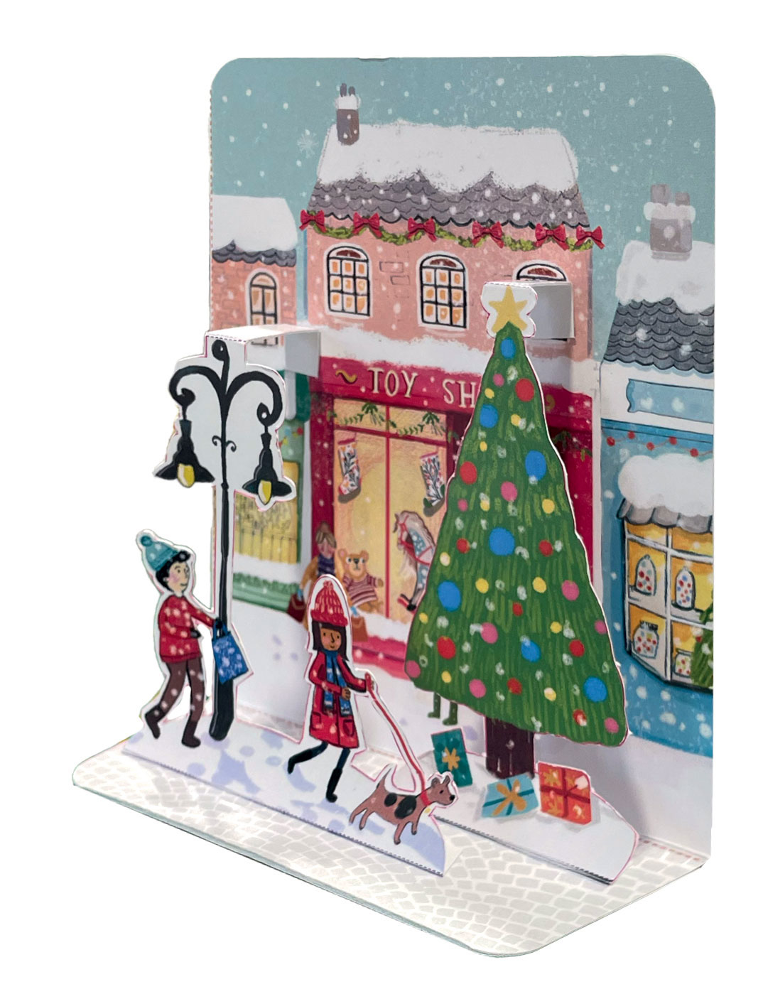 Новогодишна 3D мини картичка, Снежни продавници - Pictura
