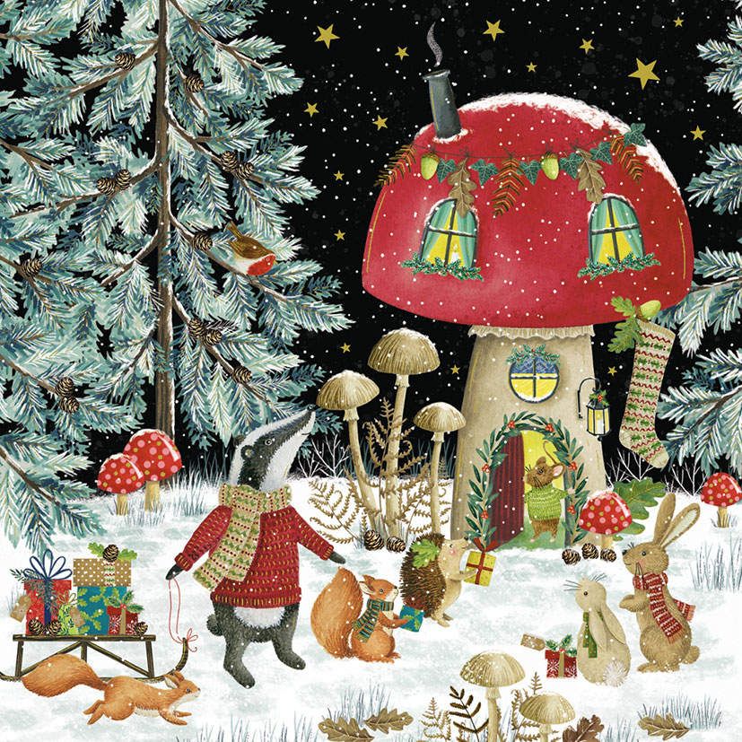 Честитка со доработка со златна фолија| Димензии: 140 x 140 mm • Со црвен плик