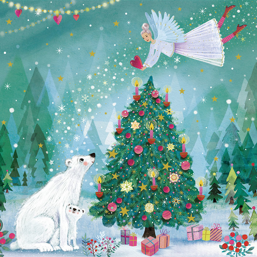 Новогодишна картичка- Мечињата, елката и самовилата - Pictura