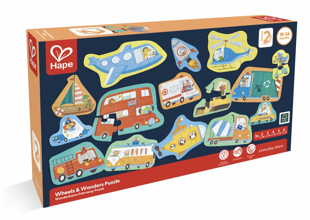 Запознајте го светот на возилата преку оваа прогресивна едукативна сложувалка-колекција на Hape!
