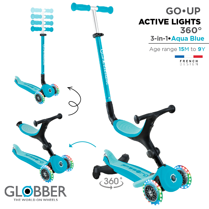 Мултифункционален тротинет 3 во 1, GO UP Active Lights 360°, склоплив (Син) - Globber