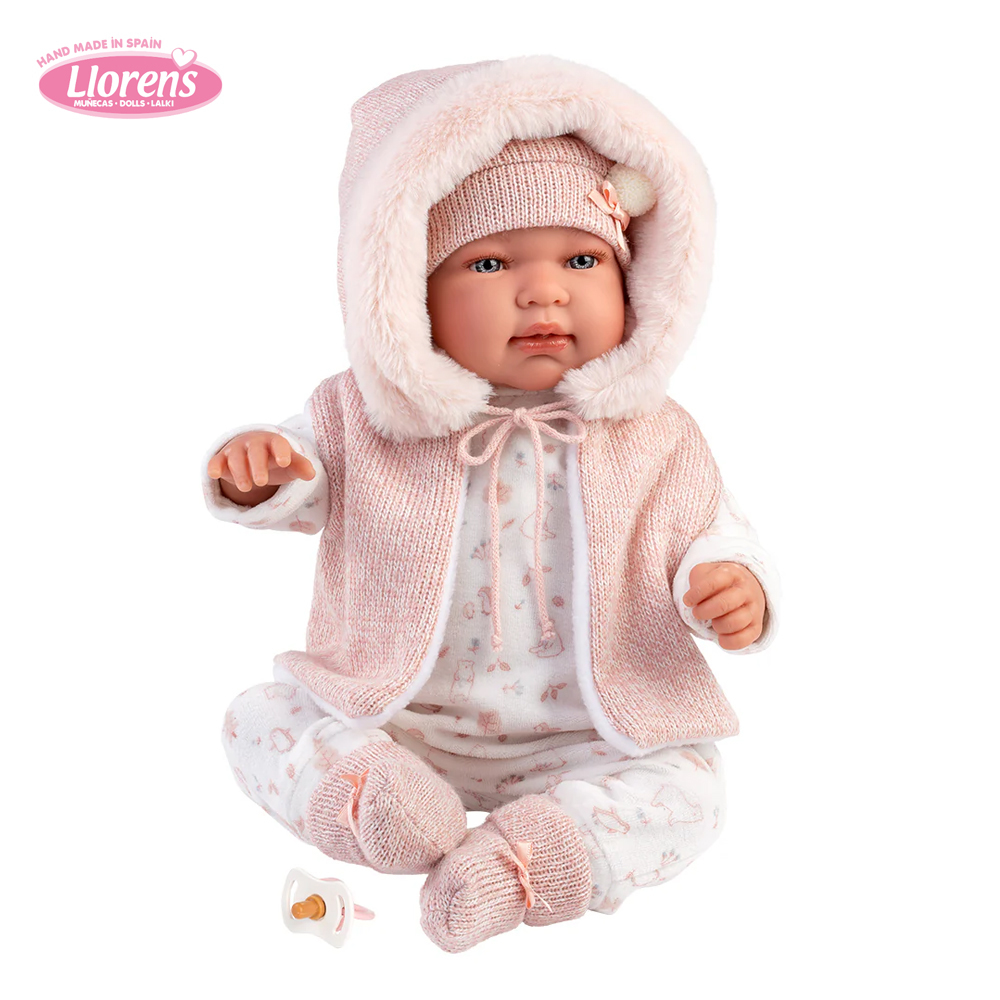 Бебе Tina со розов комбинезон со капа (плаче, вели мама и папа) 44 cm - Llorens Dolls