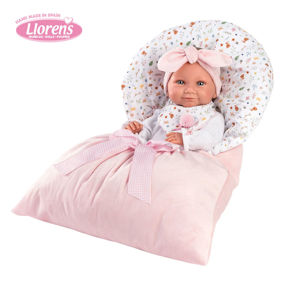 Бебе ТИНА со розова вреќичка за спиење (со флексибилни зглобови и тело од винил) 40cm - Llorens Dolls