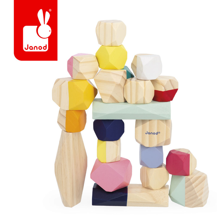 Откријте прекрасна манипулативна играчка што ја поттикнува имагинацијата кај деца од 2 години и нагоре! Овој сет се состои од 20 дрвени камчиња, секое со различна форма и обработка. Тие доаѓаат во разновидни бои со живописни нијанси. Со редење на овие 20 лесни дрвени камчиња, детето ќе открие како да гради и да одржува рамнотежа. Може слободно да експериментира, комбинирајќи ги елементите по сопствен избор и обидувајќи се да изгради што повисока конструкција!