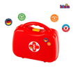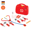 За возраст од 3 години и понатаму │ Оваа целосно опремена докторска чанта, е секогаш прирака кога е потребна помош ● Со топломерот, стетоскопот, отоскопот и другите инструменти, плишените играчки и куклите ќе добијат соодветен третман ● Кутијата и инструментите се специјално дизајнирани да одговараат на детските раце ● Помага во развојот на емпатијата, социјалните вештини и во ублажувањето на стравот од одење на лекар ● Произведено во Германија ● Димензии: 28 cm x 9,5 cm x 22 cm