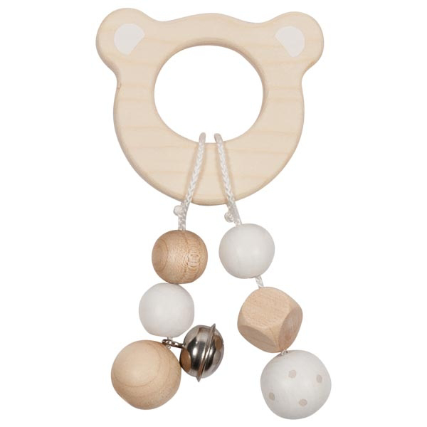 Промислено обоена во инспиративна сиво-бела кремаста палета, која прекрасно ја нагласува природната убавина на дрвото. • Рачно изработена во Германија, од бука и јавор од одржливи извори • EN71 сертификат за безбедност • Безбедни бои на база на вода • Може да служи и како глодалка што го олеснува периодот на никнување на забите