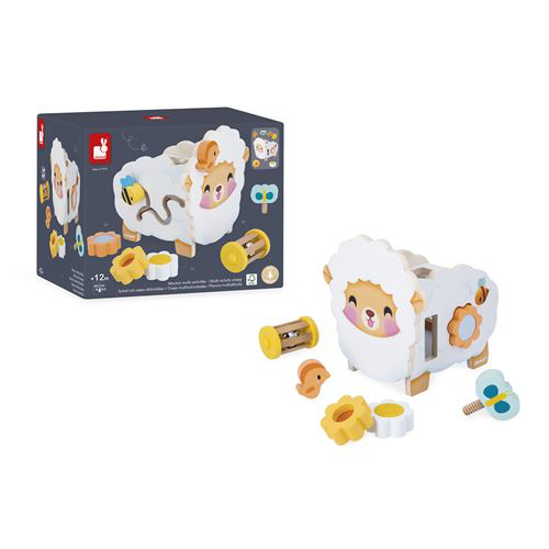 Оваа преслатка дрвена овца е мултифункционална едукативна играчка, наменета за деца од 12 месеци па нагоре. Дизајнирана е да ја поттикне љубопитноста и да помогне во развојот на фината моторика преку различни активности.