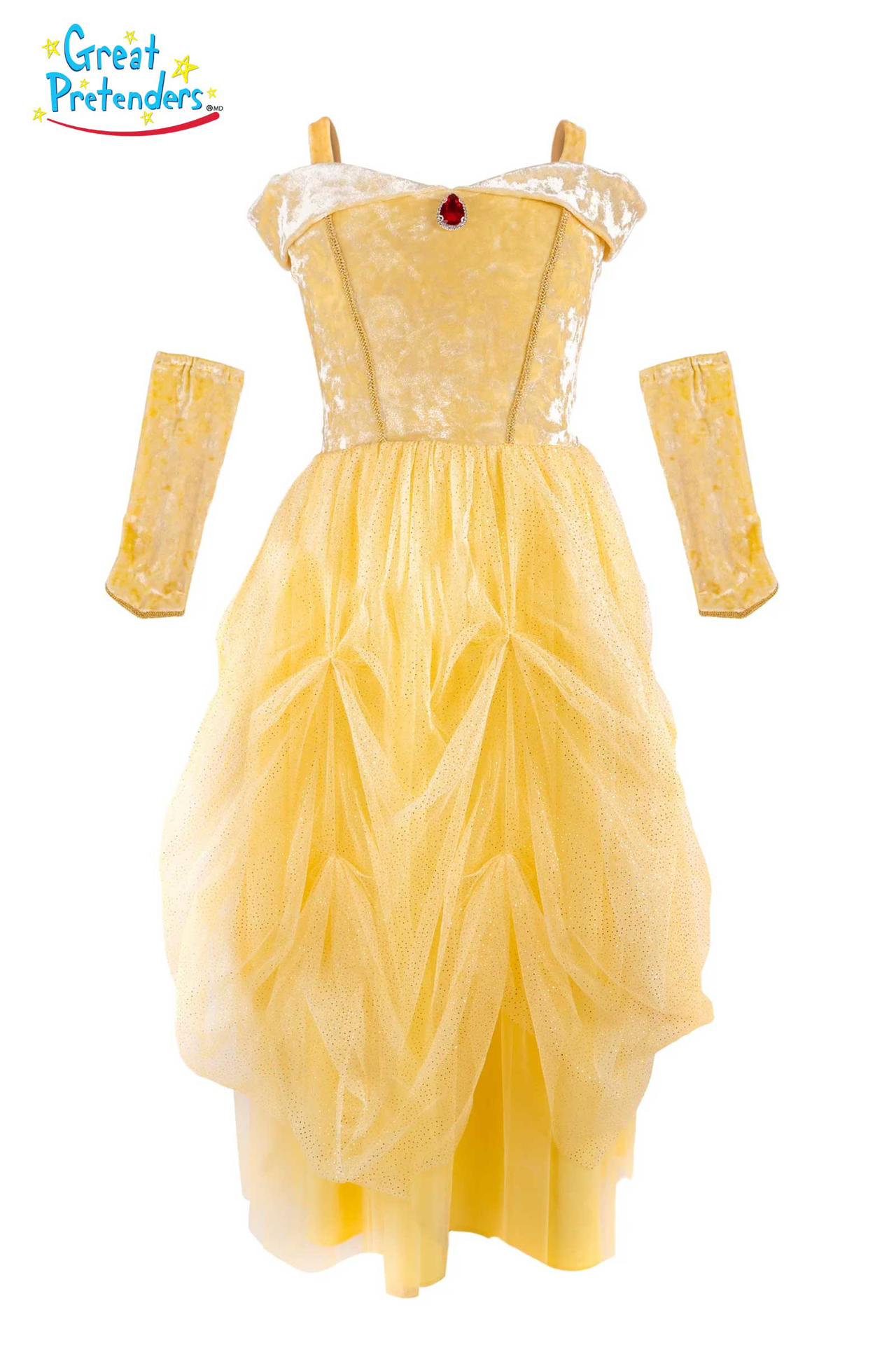 Кадифено мек жолт фустан за принцези со грејачи за раце 5-6 години - Great Pretenders