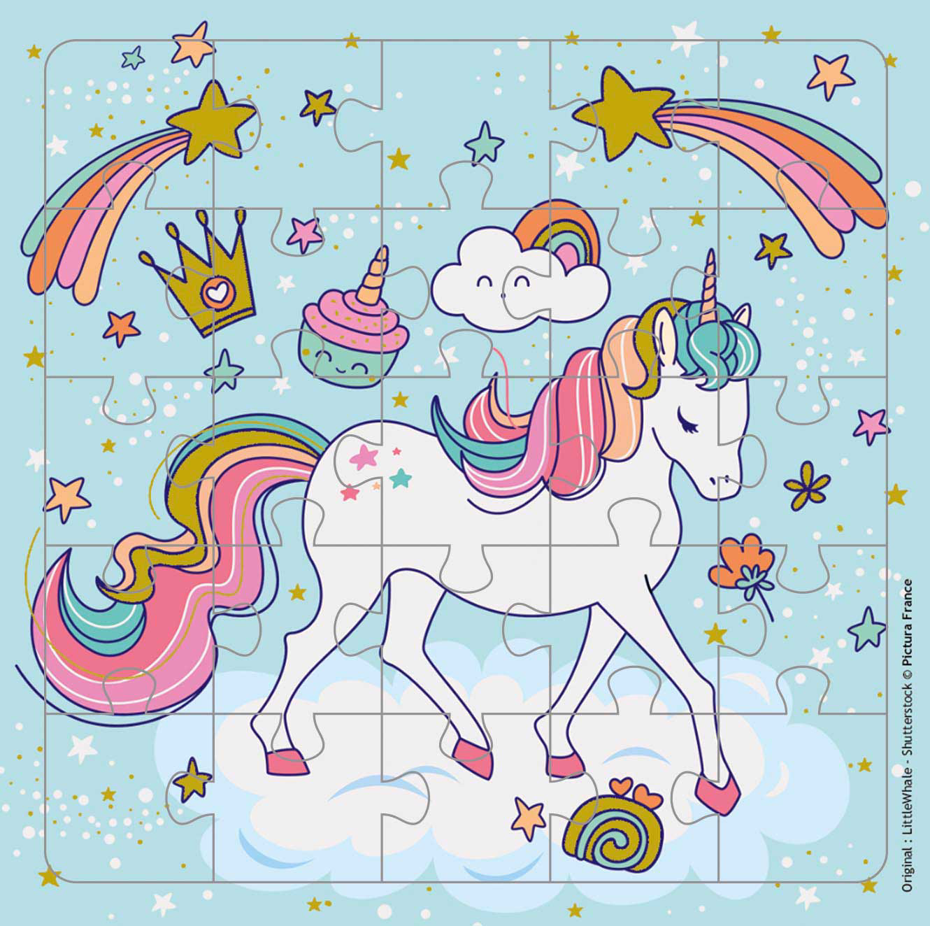 Картичка со сложувалка од 25 дела | Тема на картичката - Еднорог ● Димензии: 15,5 см x 15,5 см. ● Вклучува превиткана картичка со истата слика ● Вклучува бел плик ● Печатено на FSC-сертифицирана хартија.