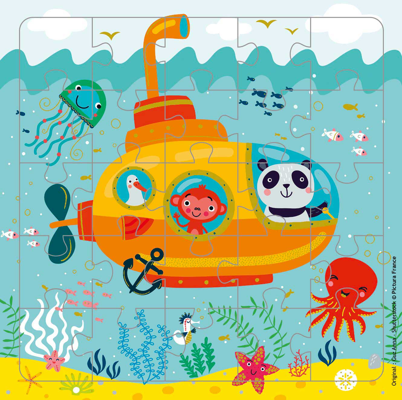 Картичка со сложувалка од 25 дела | Тема на картичката - Истражувачка подморница ● Димензии: 15,5 см x 15,5 см. ● Вклучува превиткана картичка со истата слика ● Вклучува бел плик ● Печатено на FSC-сертифицирана хартија.