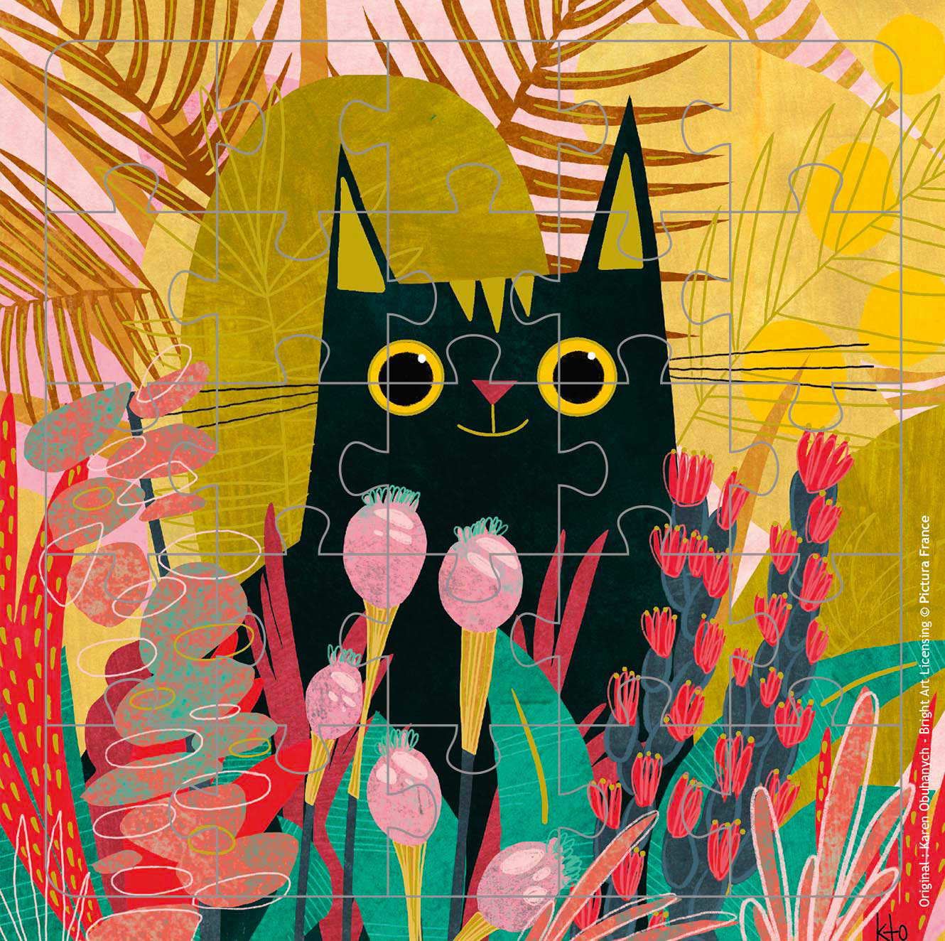 Картичка со сложувалка од 25 дела | Тема на картичката - Мала црна мачка ● Димензии: 15,5 см x 15,5 см. ● Вклучува превиткана картичка со истата слика ● Вклучува бел плик ● Печатено на FSC-сертифицирана хартија.