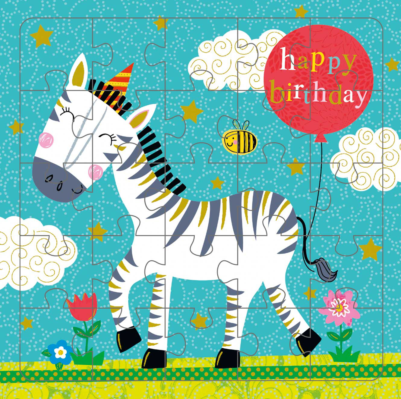 Картичка со сложувалка од 25 дела | Тема на картичката - Среќен роденден Зебра ● Димензии: 15,5 см x 15,5 см. ● Вклучува превиткана картичка со истата слика ● Вклучува бел плик ● Печатено на FSC-сертифицирана хартија.