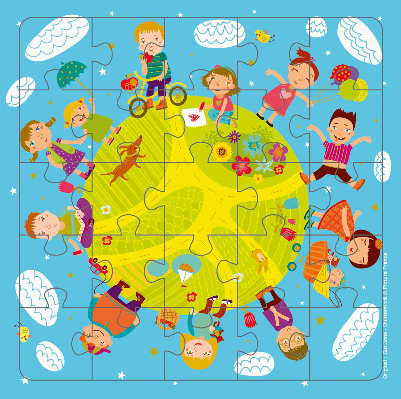 Картичка со сложувалка од 25 дела | Тема на картичката - Светот на децата ● Димензии: 15,5 см x 15,5 см. ● Вклучува превиткана картичка со истата слика ● Вклучува бел плик ● Печатено на FSC-сертифицирана хартија.