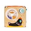 • Страна со ротирачко тркало полно со дрвени јајца во различни големини, коешто децата можат да го вртат со помош на дршката и ротирачкото копче со илустрација на месечина, коешто произведува звук и со тоа го стимулира слухот.