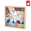 Изградете ја највисоката планина што можете! Со овој сет од дрвени блокови и фигури, децата од 2-годишна возраст и понатаму можат да изградат населба во срцето на зимскиот пејзаж. Со вкупно 35 елементи од цврсто дрво, овој сет за градба содржи: 27 коцки за склопување на селото и планините покриени со снег и 8 ликови и животни. Има толку многу да се открие во оваа долина!  Со нивните дрвени коцки децата ја развиваат својата креативност и имагинација, како и нивната умешност. Малите сакаат да редат бескрајно, додека постарите деца измислуваат свои светови. Смешни приказни и луди авантури сигурно ќе се случат во оваа планинска идила!