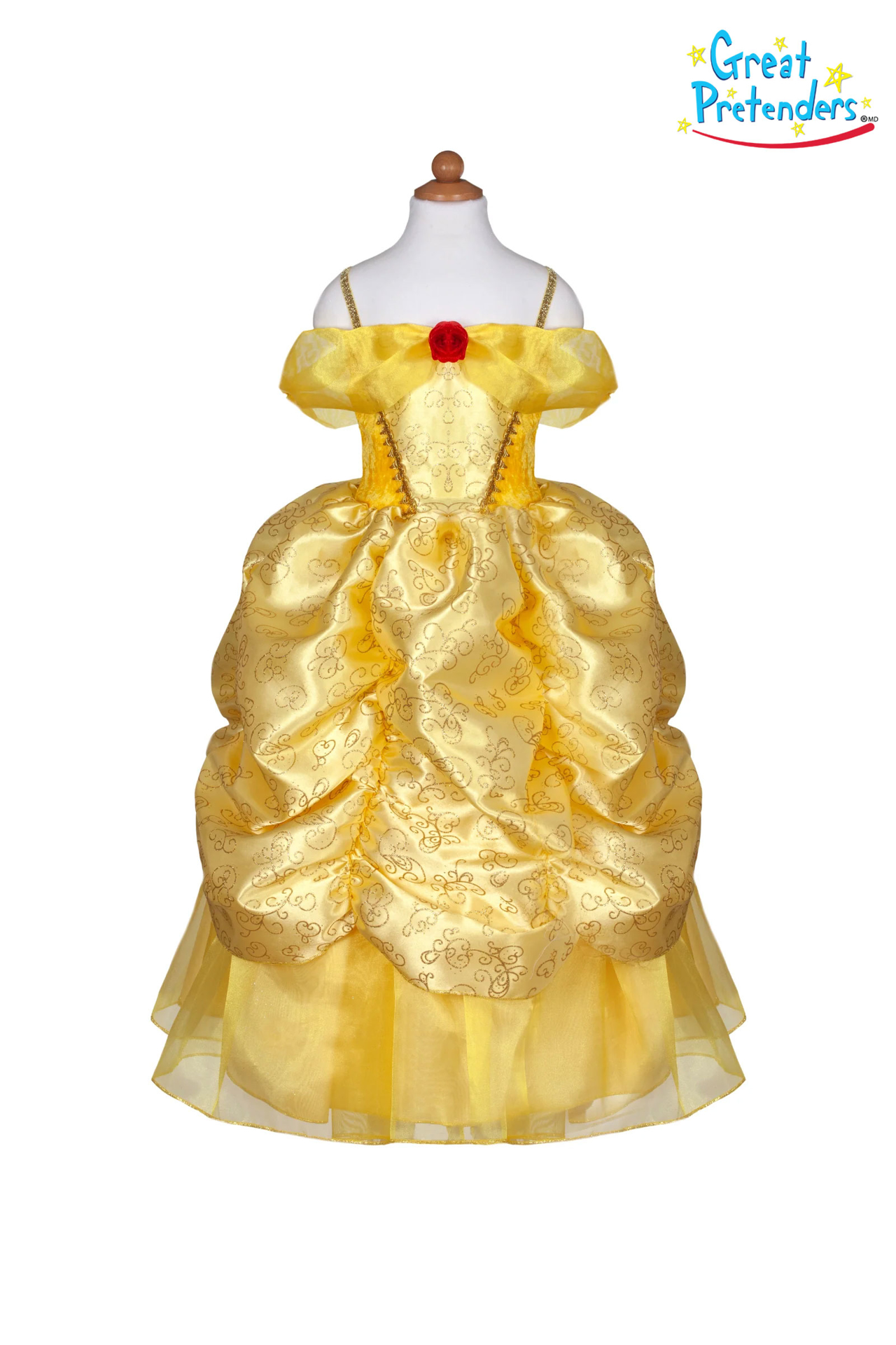 Бидете тема на разговор на секоја забава, со оваа луксузна облека инспирирана од приказната Убавицата и ѕверот. Направена е од најквалитетни ткаенини и има извонредни детали, убави шари и слоеви од богати текстили. Само сатени со премиум квалитет се искористени за изработка на ова ремек-дело на GreatPretender®.