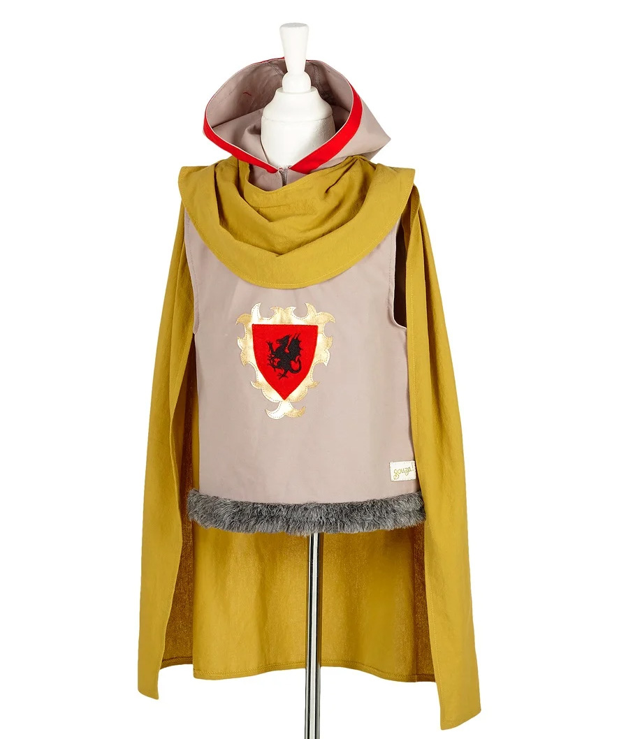 Малите ќе се чувствуваат како благороден витез во оваа неверојатна витешка туника! Со неа ќе можат да се чувствуваат како благороден витез на тркалезната маса, да ја ослободат принцезата од канџите на змејот, или да се натпреваруваат во витешки борби! Овој костим е совршен за роденденски забави или која било друга игра со играње улоги.