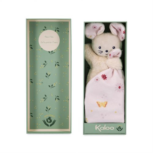 Ова мало глувче завикатно во исклучително меко квадратно ќебенце ќе биде омилениот придружник на бебето. Со своето мало, меко кадифено тело, тоа е лесно за фаќање и држење во раката на бебето. Квадратното ќебе, закачено меѓу неговите шепи е украсено со розов принт со прекрасни маргаритки и пеперутки, кои потсетуваат на убавината и ведрината на природата. Овој дизајн се наоѓаи  во ушите на глувчето и го подобрува вкупниот естетски впечаток.