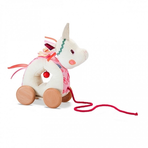 Овој сладок еднорог ќе го придружува вашето дете во неговите/нејзините први чекори. Тој ниша со главата и ѕвони кога вашето малечко ќе го повлече со јажето. Ова ќе ги направи првите чекори многу полесни и ќе му даде на вашето дете поголема самодоверба при одењето и во неговите авантури. Лесно можете да ги извадите тркалата кога на еднорогот му треба бањање... На овој начин секогаш ќе биде убав и уреден!