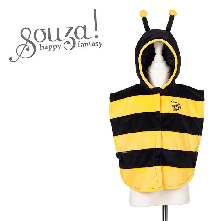 Костимот на пчелката Маја со качулка, од холандската марка Souza! е убава, вешто изработена облека за девојче. Изработена од кадифе, таа импресионира со своето внимание кон деталите. Атрактивна е, со широки црни и жолти ленти, прицврстени на предниот дел со скриени прилепувања. На црната качулка со жолт раб, има црни антени со жолти топчиња на врвот. Костимот е пријатен на допир и удобен за носење.