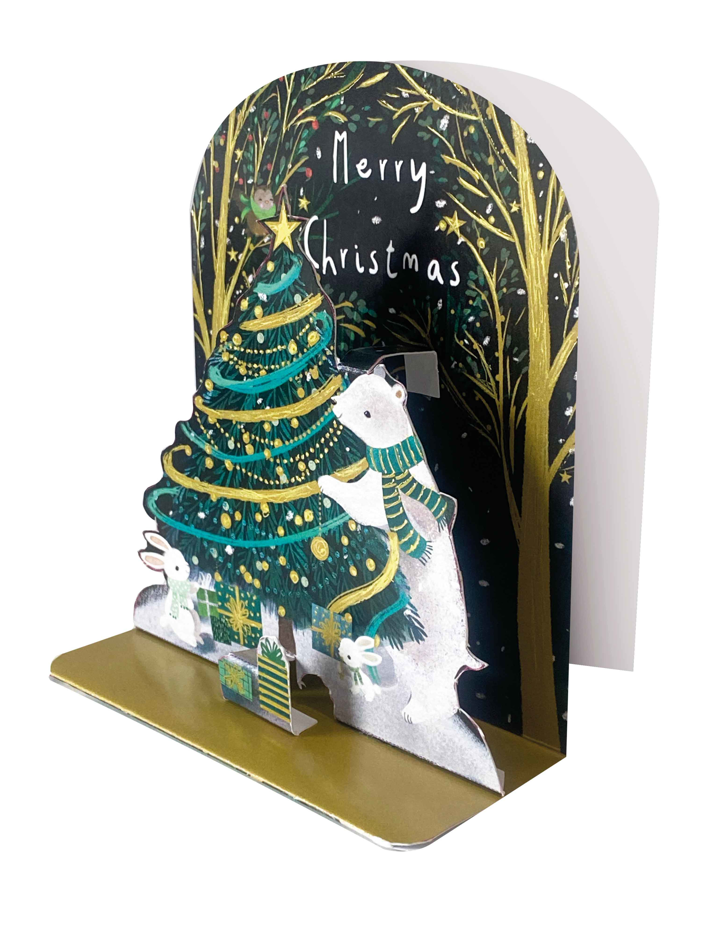 Новогодишна 3D мини картичка, Божиќна елка и мечка - Pictura