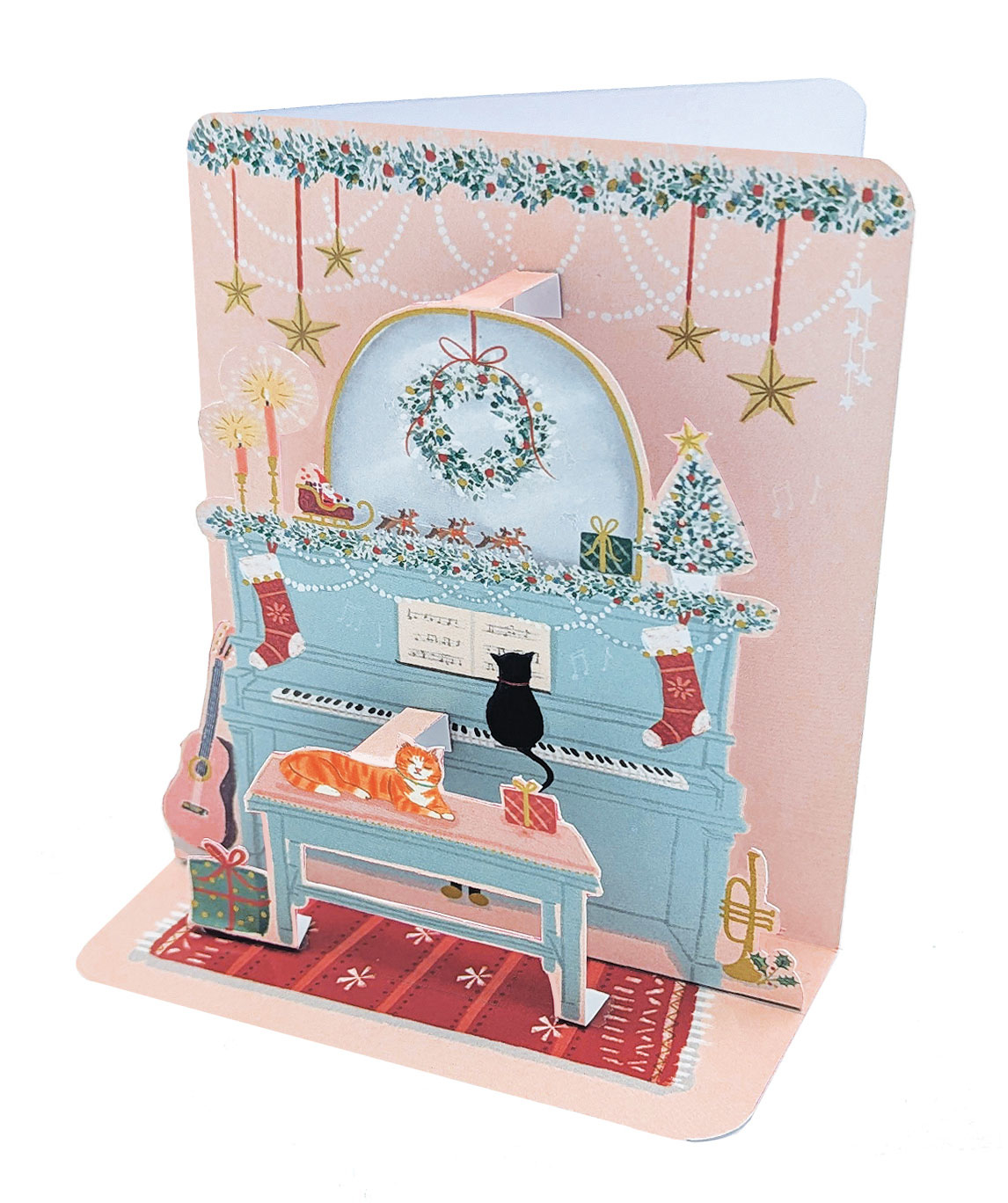 Новогодишна 3D мини картичка, Мачка на пијано - Pictura
