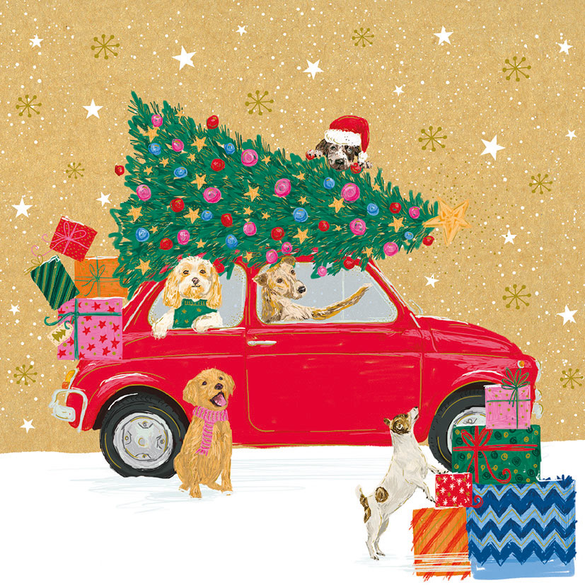 Новогодишна честитка АВТОМОБИЛ НАТОВАРЕН СО НОВОГОДИШНА ЕЛКА, Cosy Paper - Pictura