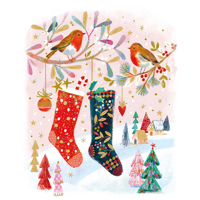 Новогодишна честитка ЧОРАПИ И ЦРВЕНОГУШКИ, Cosy Paper - Pictura