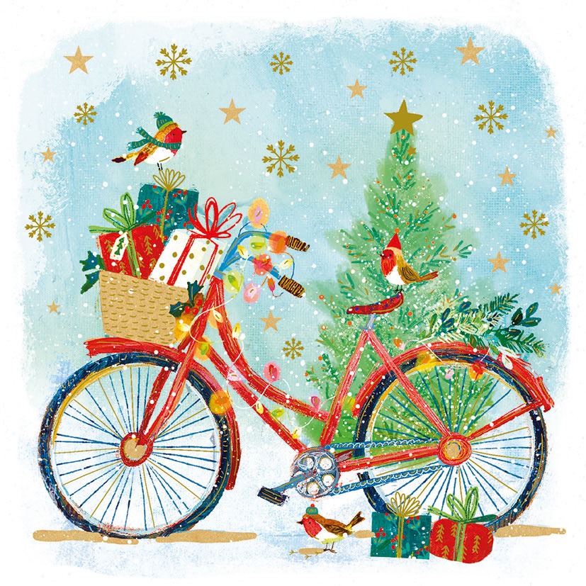 Новогодишна честитка ВЕЛОСИПЕД НАТОВАРЕН СО ПОДАРОЦИ, Cosy Paper - Pictura