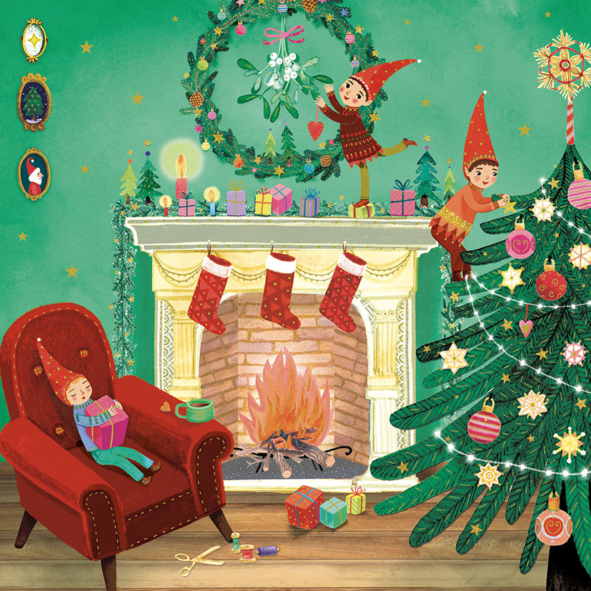 Новогодишна картичка, Покрај огништето - Pictura