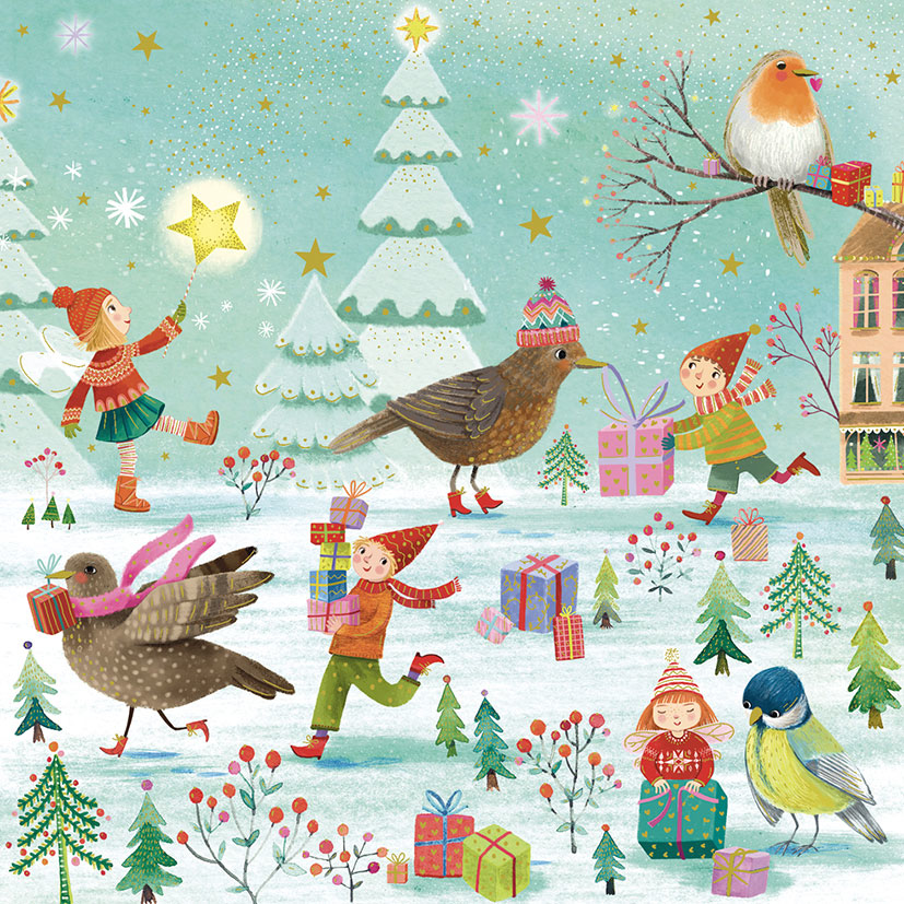 Честитка со доработка со златна фолија| Димензии: 140 x 140 mm • Со црвен плик