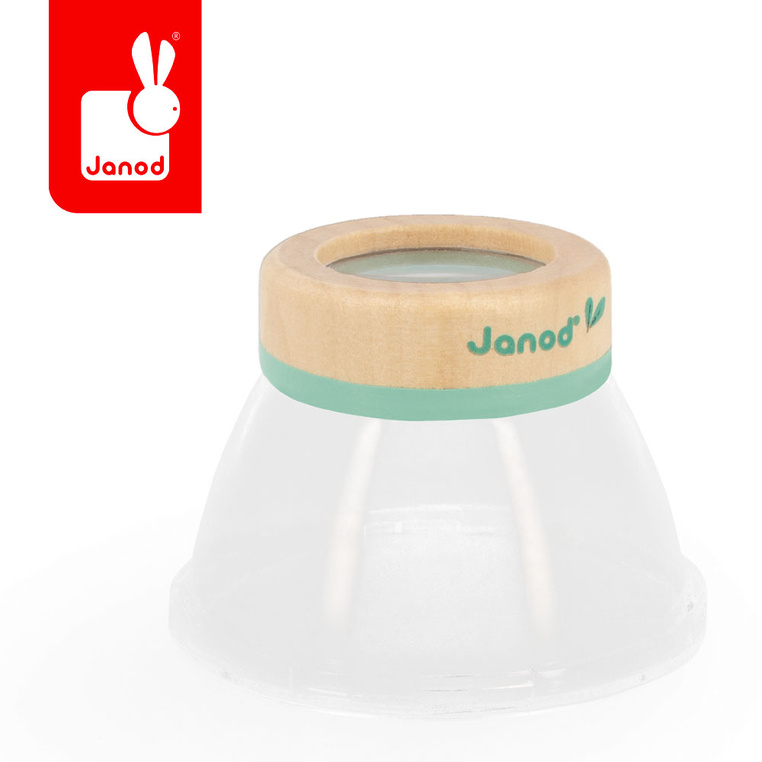 Децата можат да ги истражуваат жилките на листот или ситните антени на инсектите. Практична и безбедна, лупата има дрвен капак со мал прозорец и транспарентна пластична основа за целосен преглед на предметот. На капакот има и мерна скала што овозможува мерење на пронајдоците и подлабоко истражување.