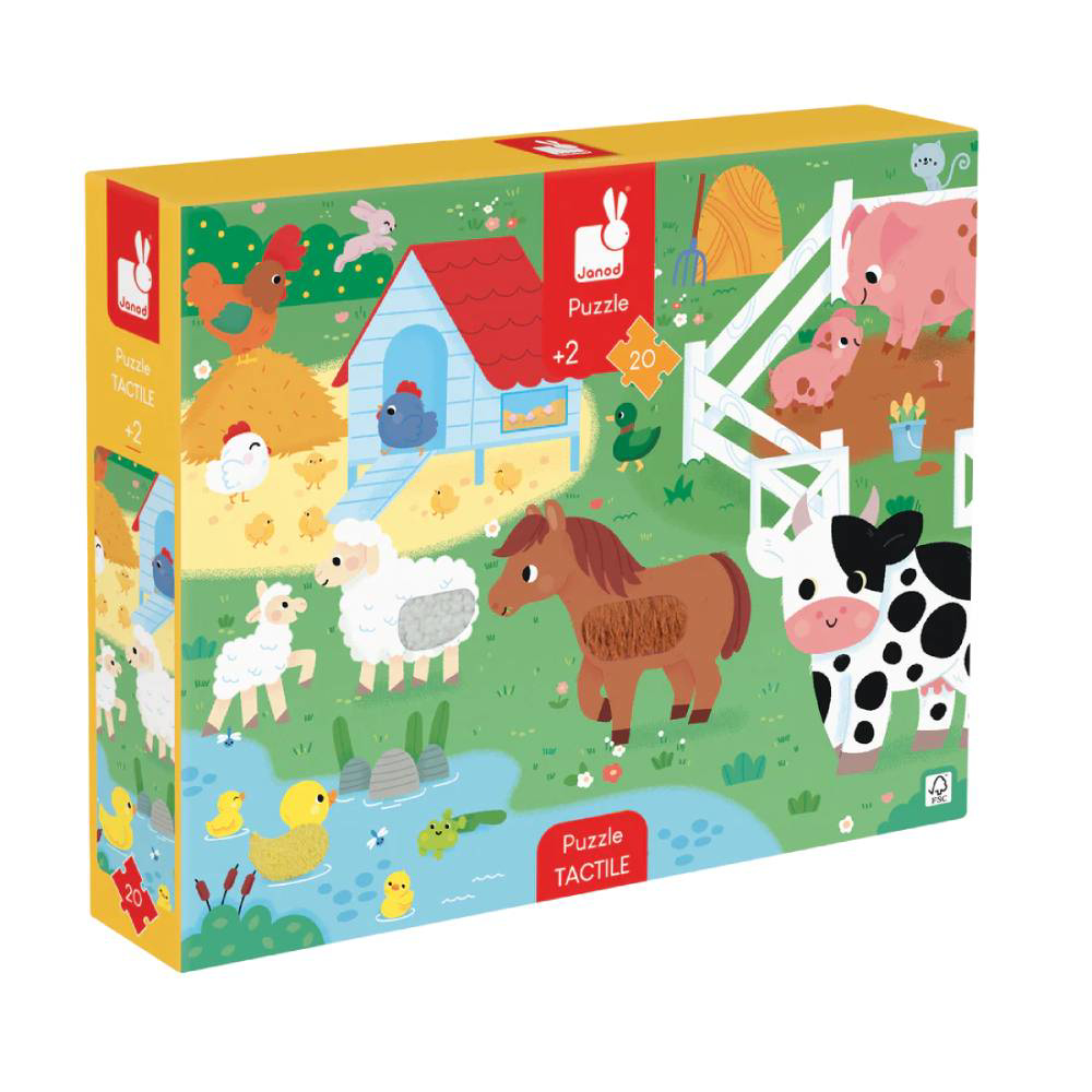 Сложувалка со текстури за допирање - ФАРМА, 20 парчиња - Janod