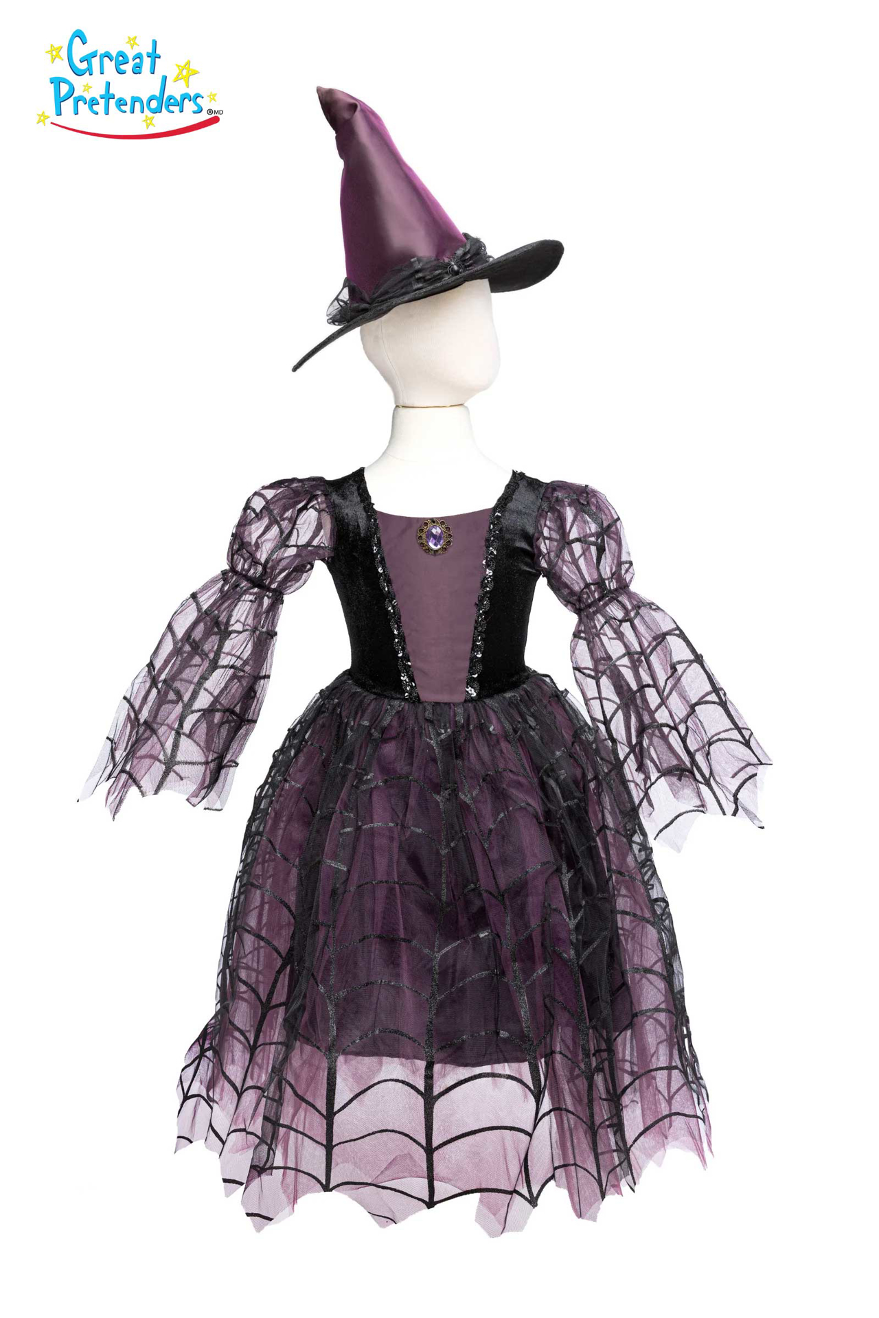 Ви ја претставуваме нашата највпечатлива вештерка досега – Amethyst the Spider Witch фустан со шешир! Совршен избор за малите магионичарки кои сакаат да изгледаат истовремено мистично и елегантно.